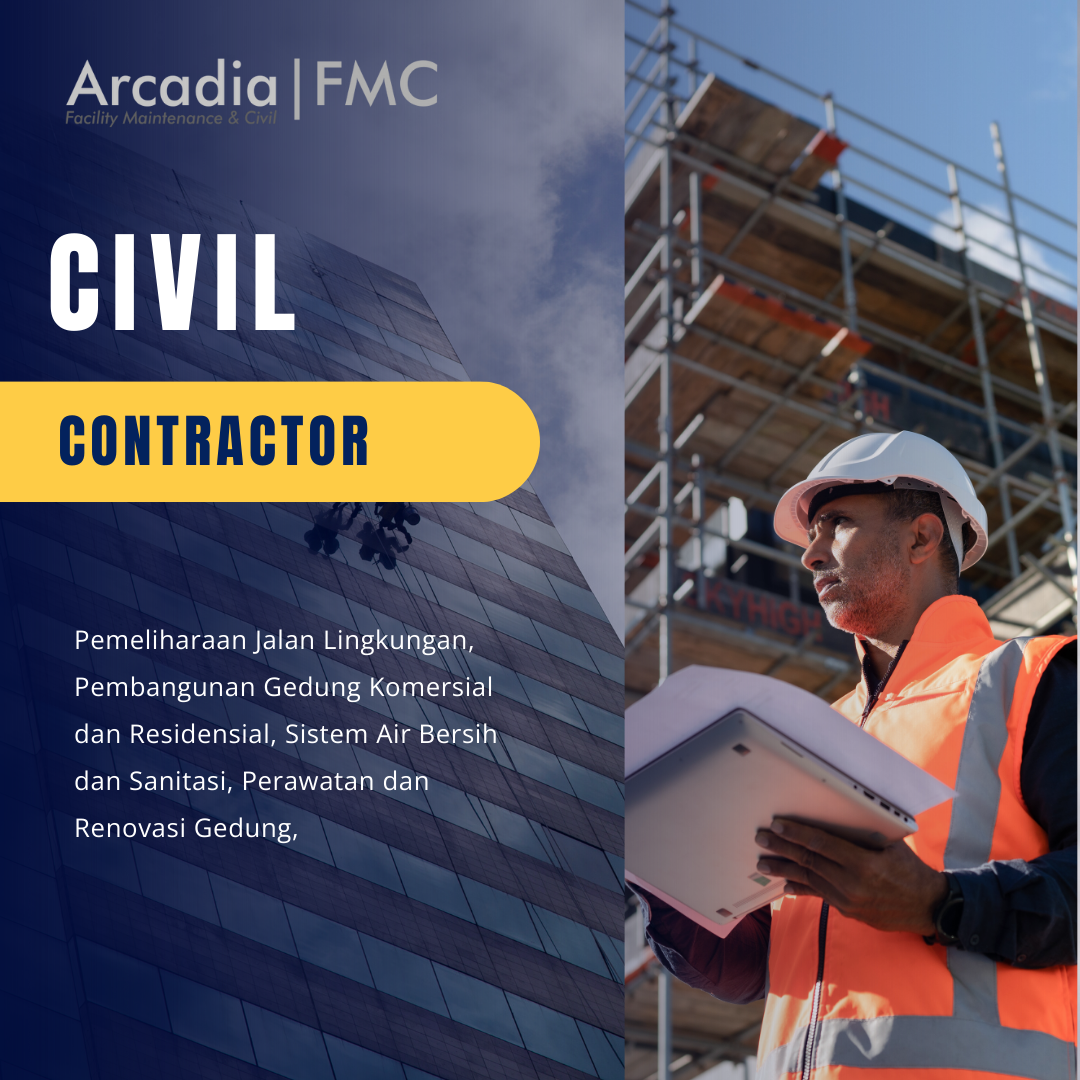 Pekerjaan Civil Contractor: Kami mengerjakan proyek konstruksi dan renovasi, baik untuk interior maupun eksterior, termasuk pembangunan gedung, perbaikan struktur, dan pengelolaan infrastruktur pendukung.