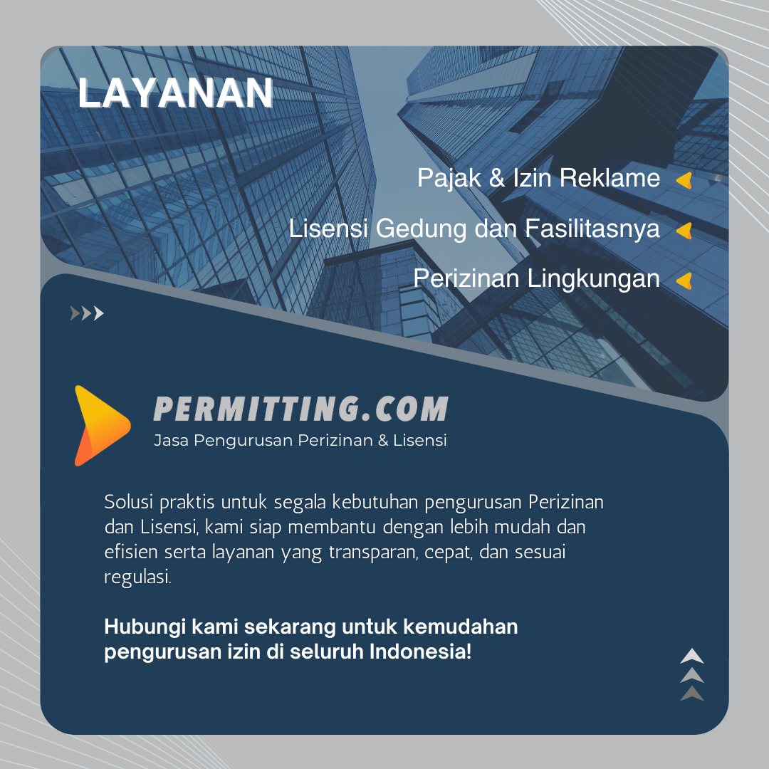 Permitting: Pengurusan perizinan Reklame, Building & Facility Licenses dan Environment Permit untuk memastikan kepatuhan terhadap peraturan yang berlaku untuk mendukung legalitas bisnis Anda.